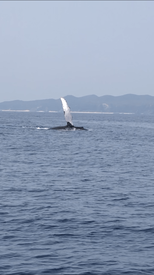 今日のクジラさん達はブローと尾びれをたっぷりと見せてくれましたが、先日ダイビングへ行ったときに見れたクジラは尾びれより胸びれを見せてくれる子でした!