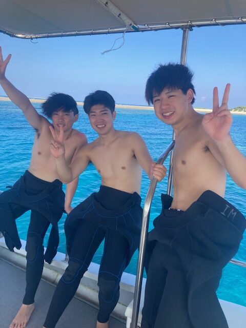 初めてのダイビングにもかかわらず、緊張一切無しの三人!!!