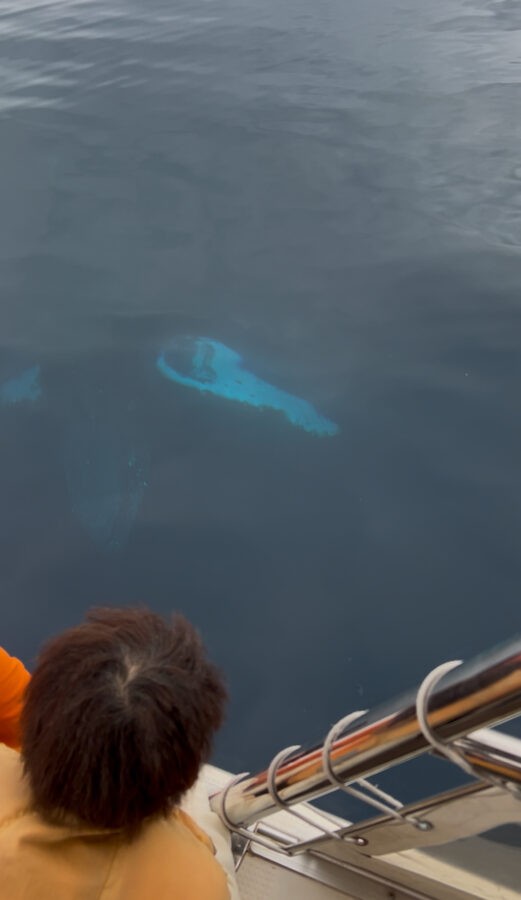 大人のクジラがすーっと船の下を通り抜けたのが、船上から見えて皆さん大興奮でした😊