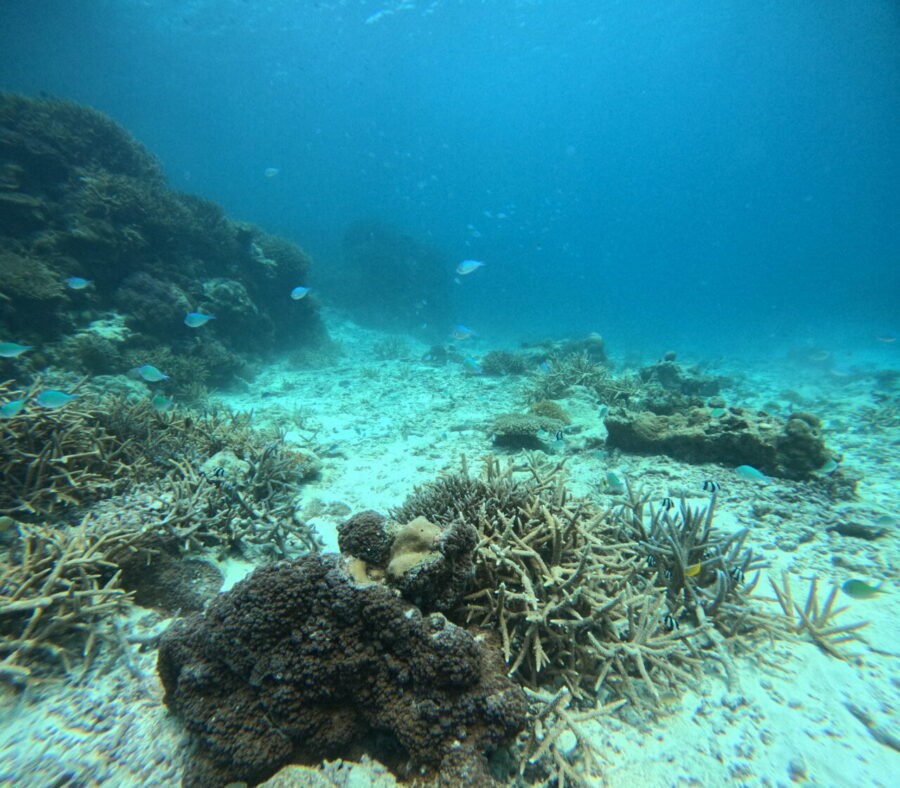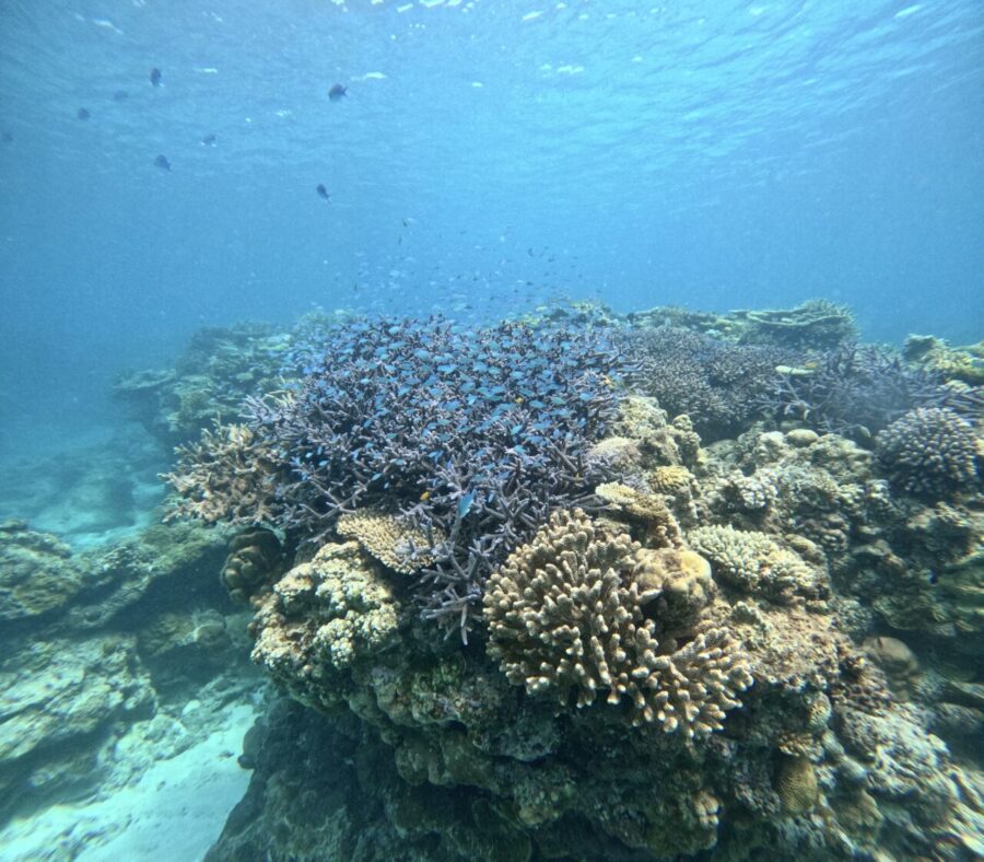 サンゴ礁の中を青い魚が舞い散ってとてもきれいでした✨