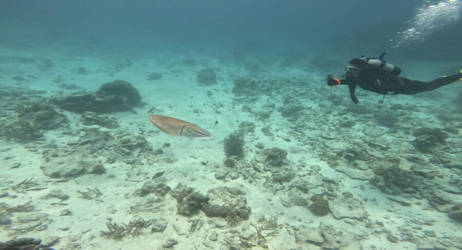 ダイビング中に大きなコブシメ2体を見る事ができました!