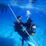 | 9:30〜10:30 | 【ポイント到着】 器材の使い方、注意点等をレクチャーします。ライフジャケットかウェットスーツを装着し海へ入る準備をします。 |